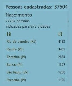 Estatísticas das pessoas cadastradas na árvore genealógica: quantas mulheres e homens, quantas em cada cidade, em cada ano etc.